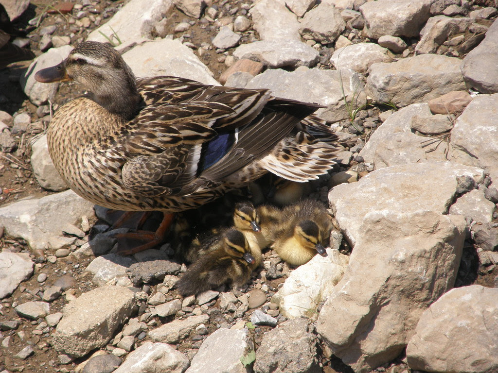 However, I did run across this Mallard family just trying to stay cool along the bank of the Ohio River in New Richmond today while out and about. Mommy Mallard was trying to keep the little ones cool :-)