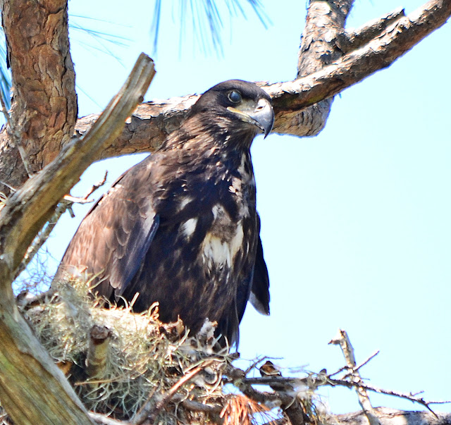 Eagle followers in Pinellas county received bad news earlier this week. The baby eaglet from Tierre Verde, just outside of Fort Desoto Park, died on Monday. It had been flying for several weeks now. Florida Fish and Wildlife have taken the eaglet and will perform test to see if they can determine what happened. I've always read 40% of baby eagles don't survive but it's still so sad. Someone from the St. Petersburg Audubon posted on facebook that out of the 48 baby eagles that were born in Pinellas county this spring, this is the 2nd one that has died. I didn't hear what happened to the first one. I guess the county is beating the statistics so far. Here is my post of the pictures I had taken when the baby was still on the nest - Fort Desoto eagle post.